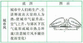 在现实生活中存在很多与热力环流原理相同的大气环流,如城市风、海陆风和山谷风等。