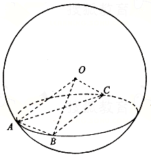 ∠ABC=60º,O为球心,则直线OA与截面ABC所成的角是