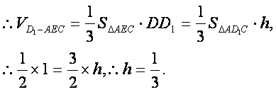 也即,得,从而,所以点E到平面AD1C的距离为