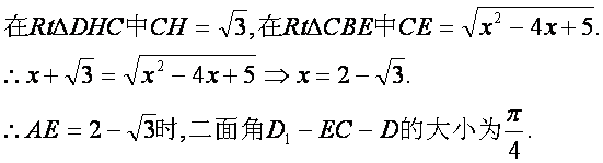 ∴AE=时,二面角D1—EC—D的大小为.