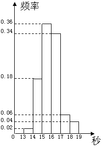 分组方法得到的频率分布直方图,设成绩小于17秒