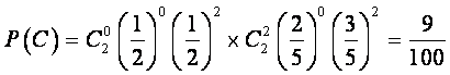 甲、乙两人得分之和ξ的可能取值为0、1、2,则ξ概率分布为: