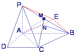 所以四边形ACBE为正方形. 由PA⊥面ABCD得∠PEB=90°