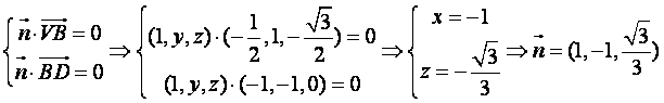 设平面VDB的方程为mx+ny+pZ+q=0,将V.B.D三点的坐标代入可得