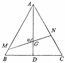 点,线段MN经过△ABC的中心G.设∠MGA=α(
