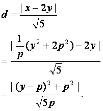 所以当x-2y-2=0与y2=px-2p2仅有一个公共点时,该点到x-2y=0的距离最小,