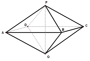 4、如图,已知两个正四棱锥`P-ABCD`与`Q-ABCD`的高分别为1和2,`AB=4`,