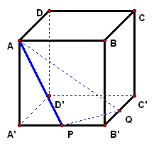 1、如图,正方体`ABCD-A'B'C'D'`的棱长为8,`P`、`Q`分别是棱`A'B'`和`B'C'`的中点,则点`A'`到平面`APQ`的距离为( A