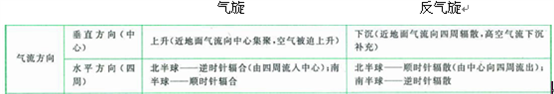 〖特征/性质〗低压(气旋)与高压(反气旋)