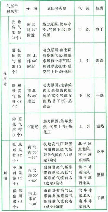 2、气压带风带的特征、成因和影响: