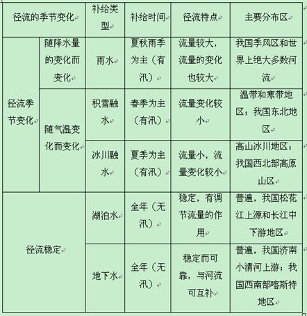 (1)河流径流的季节变化