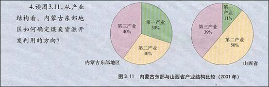 〖案例〗山西煤炭资源的综合利用 1、万家寨引水工程 ①建设引水工程的原因:能源重化工业发展需要消耗大量的水资源;山西省年降水量少,地表水缺乏。 ②缺水严重地区:晋北地区(大同一带)和晋中地区(太原一带) ③山西省最大的水利工程——万家寨引水工程 ④作用:缓解了太原、大同、朔州桑中兴城市缺水的局面。 2、内蒙古东部地区矿产资源分布