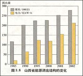 3、加强煤炭的加工转换 ①目的:为了提高能源工业的经济效益和推动我国能源消费结构的调整 ②措施:一方面,建设坑口电站,提高电力生产能力,变输煤为输电;另一方面,发展炼焦业,为冶金工业发展提供能源,并向外输出焦炭。 ③结果:促进了能源输出结构水平的提高,提高了山西能源工业的经济效益。