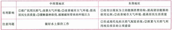 a.有利于改善东部地区的大气质量:与煤炭相比,利用天然气作燃料几乎不产生二氧化硫、粉尘等污染物质,氮氧化物和二氧化碳的排放量也大为减少。长江三角洲地区的能源长期高度依赖煤炭,从西部地区输送来的天然气,可以部分替代煤炭。