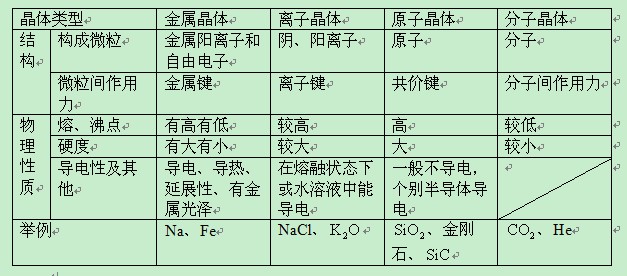 四种晶体比较