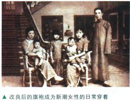 晚清20世纪20年代之后,人们吸收西方服饰的长处,对旗袍进行了多次改革与创新,使旗袍由宽松肥大演变到合身实体,受到广大女性的欢迎,成为城镇新潮女性的日常着装。