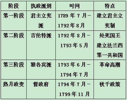 法国大革命 是1789年7月14日在巴士底监狱暴发的一场革命,法国的君主专制政体被推翻。大革命的结束时间有多种说法,其中一种观点认为1794年7月雅各宾派统治的结束为革命的终结。另有观点认为1799年的雾月政变为革命终结的标志。 1、背景 ①根本原因:波旁王朝的封建专制统治阻碍了法国资本主义的发展。(经济) ②思想动员:法国启蒙运动的发展。 ③国际环境:美国独立战争的影响。 ④导火线:三级会议的召开。 2、爆发标志:1789年7月14日,巴黎人民攻占巴士底狱。 3、五年的法国大革命(1789-1794)