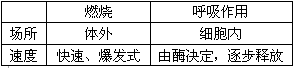 有氧呼吸与燃烧的比较