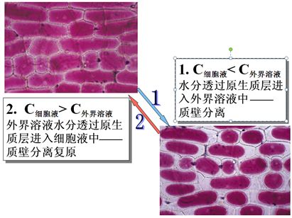 (2)原生质层与细胞壁分离,液泡体积缩小,细胞液浓度增大。