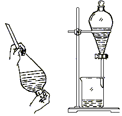 (6)重复上述操作,直至分液漏斗中只放出很少的气体时为止。再将分液漏斗剧烈振荡2~3 min,然后将漏斗放回铁圈中,待液体静置分层。
