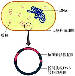 最常用的质粒是大肠杆菌的质粒中常含有抗药基因,四环素的标记基因。