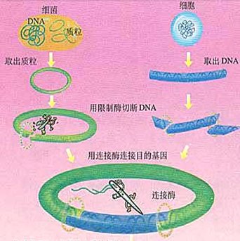 1)用一定的限制酶切割质粒概念,使其出现一个切口,露出黏性末端。