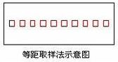 当调查的总体为长条形时,可用等距取样法,如图,先将调查总体分成若干等份,由抽样比率决定距离或间隔,然后按这一相等的距离或间隔抽取样方的方法,叫做等距取样法。例如,长条形的总体为100 m长,如果要等距抽取10样方,那么抽样的比率为1/10,抽样距离为10 m,然后可再按需要在每10 m的前1m内进行取样,样方大小要求一致。