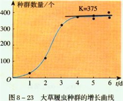 环境容纳量(K值) 〖定义〗 环境容纳量(K值):在环境条件不受破坏的情况下,一定空间中所能维持的种群最大数量。 〖关键点〗 当种群数量达到K/2时,单位时间内,种群数量增加的绝对数最大,故此时种群增长速率最大,(相当于曲线的斜率最大)。 在K值时,种群数量增长率为0,即出生率=死亡率,但种群数量达到最大。 (如捕鱼时将留存鱼的数量控制在K/2,就可以保持鱼的增长速率最快,并持续获得最大捕鱼量。) 〖实例〗 1、大草履虫种群增长曲线: 生态学家曾经做过这样一个实验:在0.5mL培养液中放入5个大草履虫,然后每隔24h统计一次大草履虫的数量。经过反复实验.得出了如图所示的结果。从图可以看出: 大草履虫在这个实验环境条件下的最大种群数量是375个,这就是该实验种群的K值。