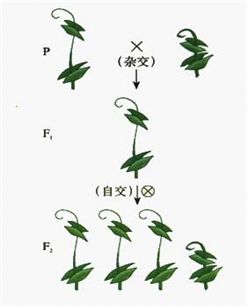 纯种高茎豌豆和矮茎豌豆杂交,子一代都为高茎,子一代高茎继续自交,子二代中出现了高茎豌豆和矮茎豌豆两种性状,这就是性状分离。
