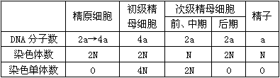 以精子的形成为例总结减数分裂过程中DNA、染色体和染色单体的变化: