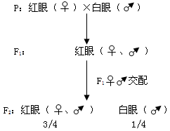 理论解释:就果蝇红眼与白眼这一对相对性状来看,F1全为红眼,F2红眼:白眼为3:1。符合分离定律,表明这对性状受一对等位基因控制,所不同的是白眼性状的表现,总是与性别相联系。
