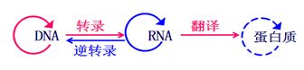 (1)中心法则高度概括了DNA的两大基本功能,即遗传信息的传递和遗传信息的表达。同时中心法则也概括了生物遗传物质和性状的关系。 (2)RNA复制只发生在少数无DNA的病毒生物体中。 (3)逆转录过程中的逆转录酶在基因工程中可以mRNA为模板来合成目的基因。 〖实质〗 DNA—DNA(或基因—基因):以DNA作为遗传物质的生物的自我复制; RNA—RNA:以RNA作为遗传物质的生物的自我复制; DNA—RNA:细胞核中的转录过程; RNA—DNA:个别病毒的逆转录过程; RNA—蛋白质:细胞质中核糖体上的翻译过程 〖关键点〗 遗传信息并不一定是从DNA单向地流向RNA,RNA携带的遗传信息同样也可以流向DNA。但是DNA和RNA中包含的遗传信息只是单向地流向蛋白质,迄今为止还没有发现蛋白质的信息逆向的流向核酸。 这种遗传信息的流向,就是克里克概括的中心法则的遗传学意义。