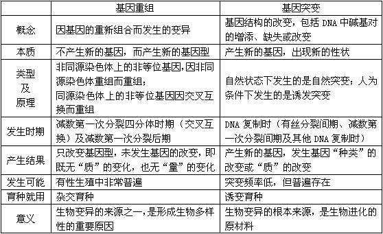 基因突变与基因重组的比较