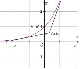 (5分)若过点$(a,b)$可以作曲线$y=e^{x}$的两条切线,则( ) A.$e^{b}<a$ B.$e^{a}<b$ C.$0<a<e^{b}$ D.$0<b<e^{a}$ 分析:画出函数的图象,判断$(a,b)$与函数的图象的位置关系,即可得到选项. 解:函数$y=e^{x}$是增函数,$y\prime =e^{x}>0$恒成立,