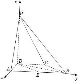 分析:(1)易知$PD\bot BD$,取$AB$中点$E$,容易证明四边形$BCDE$为平行四边形,再根据长度关系可得$BD\bot AD$,进而得证; (2)建立空间直角坐标系,写出各点的坐标,再求出平面$PAB$的法向量,利用向量的夹角公式即可得解. 解答:解:(1)证明:$\because PD\bot$底面$ABCD$,$BD\subset$面$ABCD$, $\therefore PD\bot BD$, 取$AB$中点$E$,连接$DE$, $\because AD=DC=CB=1$,$AB=2$, $\therefore \angle DAB=60^\circ$,又$\because AE=\dfrac{1}{2}AB=AD=1$, $\therefore DE=1$,$\therefore DE=\dfrac{1}{2}AB$, $\therefore \Delta ABD$为直角三角形,且$AB$为斜边, $\therefore BD\bot AD$, 又$PD\bigcap AD=D$,$PD\subset$面$PAD$,$AD\subset$面$PAD$, $\therefore BD\bot$面$PAD$, 又$PA\subset$面$PAD$, $\therefore BD\bot PA$; (2)由(1)知,$PD$,$AD$,$BD$两两互相垂直,故建立如图所示的空间直角坐标系,