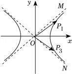 (5分)已知$P_{1}(x_{1}$,$y_{1})$,$P_{2}(x_{2}$,$y_{2})$两点均在双曲线$\Gamma :\dfrac{x^2}{a^2}-y^{2}=1(a > 0)$的右支上,若$x_{1}x_{2} > y_{1}y_{2}$恒成立,则实数$a$的取值范围为 $[1$,$+\infty )$ . 分析:取$P_{2}$的对称点$P_{3}(x_{2}$,$-y_{2})$,结合$x_{1}x_{2} > y_{1}y_{2}$,可得$\overrightarrow{O{P}_{1}}\cdot \overrightarrow{O{P}_{3}} > 0$,然后可得渐近线夹角$\angle MON\leqslant 90^\circ$,代入渐近线斜率计算即可求得. 解: