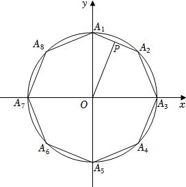 (4分)设点$P$在单位圆的内接正八边形$A_{1}A_{2}\ldots A_{8}$的边$A_{1}A_{2}$上,则$\overrightarrow{P{A}_{1}}^{2}+\overrightarrow{P{A}_{2}}^{2}+\ldots +\overrightarrow{P{A}_{8}}^{2}$的取值范围是 $[12+2\sqrt{2}$,$16]$ . 分析:以圆心为原点,$A_{7}A_{3}$所在直线为$x$轴,$A_{5}A_{1}$所在直线为$y$轴,建立平面直角坐标系,求出正八边形各个顶点坐标,设$P(x,y)$,进而得到$\overrightarrow{P{A}_{1}}^{2}+\overrightarrow{P{A}_{2}}^{2}+\ldots +\overrightarrow{P{A}_{8}}^{2}=8(x^{2}+y^{2})+8$,根据点$P$的位置可求出$x^{2}+y^{2}$的范围,从而得到$\overrightarrow{P{A}_{1}}^{2}+\overrightarrow{P{A}_{2}}^{2}+\ldots +\overrightarrow{P{A}_{8}}^{2}$的取值范围. 解:以圆心为原点,$A_{7}A_{3}$所在直线为$x$轴,$A_{5}A_{1}$所在直线为$y$轴,建立平面直角坐标系,如图所示,