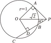 (5分)已知$\odot O$的半径为1,直线$PA$与$\odot O$相切于点$A$,直线$PB$与$\odot O$交于$B$,$C$两点,$D$为$BC$的中点,若$\vert PO\vert =\sqrt{2}$,则$\overrightarrow{PA}\cdot \overrightarrow{PD}$的最大值为$($ $)$ A.$\dfrac{1+\sqrt{2}}{2}$ B.$\dfrac{1+2\sqrt{2}}{2}$ C.$1+\sqrt{2}$ D.$2+\sqrt{2}$ 答案:$A$ 分析:设$\angle OPC=\alpha$,则$-\dfrac{\pi }{4}\leqslant \alpha \leqslant \dfrac{\pi }{4}$,根据题意可得$\angle APO=45^\circ$,再将$\overrightarrow{PA}\cdot \overrightarrow{PD}$转化为$\alpha$的函数,最后通过函数思想,即可求解. 解:如图,设$\angle OPC=\alpha$,则$-\dfrac{\pi }{4}\leqslant \alpha \leqslant \dfrac{\pi }{4}$,