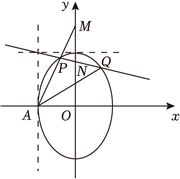 (12分)已知椭圆$C:\dfrac{y^2}{a^2}+\dfrac{x^2}{b^2}=1(a > b > 0)$的离心率为$\dfrac{\sqrt{5}}{3}$,点$A(-2,0)$在$C$上. (1)求$C$的方程; (2)过点$(-2,3)$的直线交$C$于点$P$,$Q$两点,直线$AP$,$AQ$与$y$轴的交点分别为$M$,$N$,证明:线段$MN$的中点为定点. 答案:(1)椭圆$C$的方程为$\dfrac{{y}^{2}}{9}+\dfrac{{x}^{2}}{4}=1$; (2)$MN$的中点为定点$(0,3)$,证明过程见解析. 分析:(1)由题意列关于$a$,$b$,$c$的方程组,求得$a$,$b$,$c$的值,可得椭圆$C$的方程; (2)设$PQ:y-3=k(x+2)$,即$y=kx+2k+3$,$k < 0$,$P(x_{1}$,$y_{1})$,$Q(x_{2}$,$y_{2})$,联立直线方程与椭圆方程,化为关于$x$的一元二次方程,利用根与系数的关系求得$x_{1}+x_{2}$与$x_{1}x_{2}$的值,写出直线$AP$、$AQ$的方程,求得$M$与$N$的坐标,再由中点坐标公式即可证明$MN$的中点为定点. 解:(1)由题意,$\left\{\begin{array}{l}{\dfrac{c}{a}=\dfrac{\sqrt{5}}{3}}\\ {b=2}\\ {{a}^{2}={b}^{2}+{c}^{2}}\end{array}\right.$,解得$\left\{\begin{array}{l}{a=3}\\ {b=2}\\ {c=\sqrt{5}}\end{array}\right.$. $\therefore$椭圆$C$的方程为$\dfrac{{y}^{2}}{9}+\dfrac{{x}^{2}}{4}=1$; 证明:(2)如图,