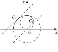 [选修4-4:坐标系与参数方程](10分) 22.(10分)在直角坐标系$xOy$中,以坐标原点$O$为极点,$x$轴正半轴为极轴建立极坐标系,曲线$C_{1}$的极坐标方程为$\rho =2\sin \theta (\dfrac{\pi }{4}\leqslant \theta \leqslant \dfrac{\pi }{2})$,曲线$C_{2}:\left\{\begin{array}{l}{x=2\cos \alpha }\\ {y=2\sin \alpha }\end{array}\right.(\alpha$为参数,$\dfrac{\pi }{2} < \alpha < \pi )$. (1)写出$C_{1}$的直角坐标方程; (2)若直线$y=x+m$既与$C_{1}$没有公共点,也与$C_{2}$没有公共点、求$m$的取值范围. 答案:(1)$x^{2}+(y-1)^{2}=1$,$(x\in [0$,$1]$,$y\in [1$,$2])$;(2)$(-\infty ,0)\bigcup (2\sqrt{2},+\infty )$. 分析:(1)直接利用转换关系,在参数方程和直角坐标坐标方程之间进行转换; (2)利用直线与圆的位置关系和点到直线的距离公式求出实数$m$的取值范围. 解:(1)曲线$C_{1}$的极坐标方程为$\rho =2\sin \theta (\dfrac{\pi }{4}\leqslant \theta \leqslant \dfrac{\pi }{2})$, 根据$\left\{\begin{array}{cc}x=\rho \cos \theta &\\ y=\rho \sin \theta &\\ {x}^{2}+{y}^{2}={\rho }^{2}&\end{array}\right.$转换为直角坐标方程为$x^{2}+(y-1)^{2}=1$, 因为$\dfrac{\pi }{4}\leqslant \theta \leqslant \dfrac{\pi }{2}$,$\dfrac{\pi }{2}\leqslant 2\theta \leqslant \pi$,$x=\rho \cos \theta =2\sin \theta \cos \theta =\sin 2\theta \in [0$,$1]$, $y=\rho \sin \theta =2\sin ^{2}\theta =1-\cos 2\theta \in [1$,$2]$, 所以$C_{1}$的直角坐标方程为$x^{2}+(y-1)^{2}=1$,$x\in [0$,$1]$,$y\in [1$,$2]$; (2)由于曲线$C_{1}$的方程为$x^{2}+(y-1)^{2}=1$,$(0\leqslant x\leqslant 1,1\leqslant y\leqslant 2)$,曲线$C_{2}:\left\{\begin{array}{l}{x=2\cos \alpha }\\ {y=2\sin \alpha }\end{array}\right.(\alpha$为参数,$\dfrac{\pi }{2} < \alpha < \pi )$,转换为直角坐标方程为$x^{2}+y^{2}=4$,$(-2 < x < 0,0 < y < 2)$; 如图所示: