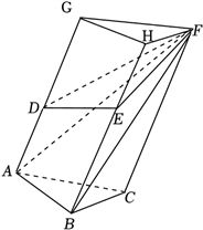 A.$\dfrac{\sqrt{3}}{6}$ B.$\dfrac{3\sqrt{3}}{4}+\dfrac{1}{2}$ C.$\dfrac{\sqrt{3}}{2}$ D.$\dfrac{3\sqrt{3}}{4}-\dfrac{1}{2}$ 答案:$C$ 分析:根据题意,分别延长$AD$、$BE$到$G$、$H$,使$AG$、$BH$、$CF$平行且相等,得到三棱柱$ABC-GHF$,根据四边形$ABED$与四边形$HGDE$全等,利用锥体的体积公式得到$V_{F-ABED}=V_{F-HGDE}=\dfrac{1}{3}V_{ABC-GHF}$,然后求出$ABC-GHF$的体积,进而算出该五面体的体积,可得答案. 解:延长$AD$到$G$,使$DG=2$,延长$BE$到$H$,使$EH=1$,连接$AF$、$BF$, 可得$AG=BH=CF=3$,结合$AG//BH//CF$,可知$ABC-GHF$为三棱柱,