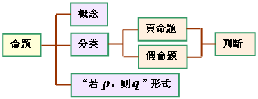 ①命题定义: 一般地,把用语言、符号或式子表达的,可以判断真假(即成立或不成立)的陈述句叫做命题。 ②命题的构成: 从构成来看,所有的命题都具由条件和结论两部分构成。 ③命题的形式: 在数学中,命题常写成“若$p$,则$q$”,或者 “如果$p$,那么$q$”的形式,通常,我们把这种形式的命题中的$p$叫做命题的条件,$q$叫做命题结论。 ④命题的分类: 命题分为真命题与假命题。 Ⅰ、真命题: 如果由命题的条件$p$通过推理一定可以得出命题的结论$q$,那么这样的命题叫做真命题。 Ⅱ、假命题: 如果由命题的条件$p$通过推理不一定可以得出命题的结论$q$,那么这样的命题叫做假命题。 Ⅲ、命题是一个判断,判断的结果就有对错之分.因此就要引入真命题、假命题的的概念,强调真假命题的大前提,首先是命题。 ⑤真假命题的判断: Ⅰ、数学中要判定一个命题是真命题,要经过推理证明。 Ⅱ、要判断一个命题是假命题,只需举一个反例即可。