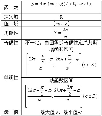 函数y=Asin(ωx+φ)的性质 〖形成〗