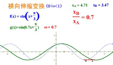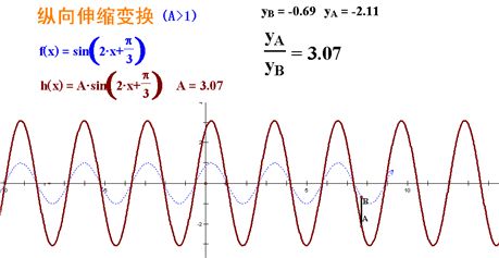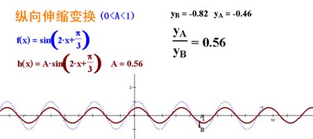 ⑵A:纵向伸缩,横坐标不变,A>1, 纵坐标伸为原来的A倍;0<A<1,纵坐标缩为原来的A倍。