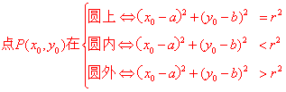 Ⅰ、用点的坐标与圆方程关系的方法判断: