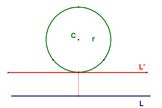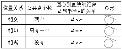 ⑵代数方法: 联立直线与圆方程的方程组,由方程组解的个数做出判断。其步骤为: 1° 将直线方程与圆的方程联立成方程组; 2° 利用消元法,得到关于某一个元的一元二次方程; 3° 求出一元二次方程的判别式Δ的值; 4° 比较Δ与0的大小:若 ,则直线与圆相离;若 ,则直线与圆相切;若 ,则直线与圆相交。反之也成立。 |