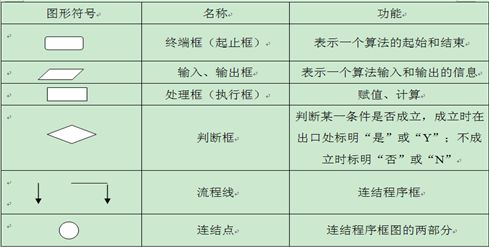 程序框图又称流程图,是一种用程序框、流程线及文字说明来表示算法的图形,下表给出了程序框、流程线和它们表示的功能