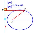椭圆具有圆锥曲线统一的定义,椭圆是平面内到一个定点和到一条定直线不在上)的距离的比等于常数的点的轨迹。其中是椭圆的离心率,定点是椭圆的焦点,定直线是椭圆的准线