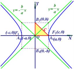 在双曲线的标准方程中,令的值不存在,则双曲线与轴无交点。令,即是双曲线与轴的两个交点。这两个交点叫做双曲线的顶点