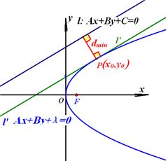 的距离最小值,这最小值就是直线与抛物线的最短距离。即求